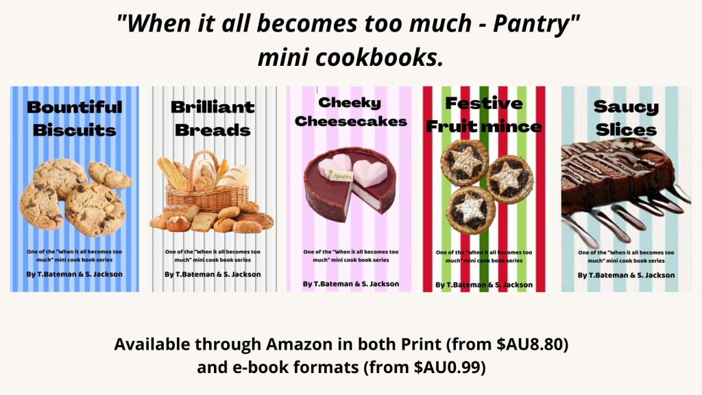 “Brilliant Breads” is the fifth book in the “When it all becomes too much” mini cookbook pantry series by Terri Bateman & Sarah Jackson. This easy-to-use book contains some useful bready facts and 20 easy to make recipes to help you make some impressive loaves (and rolls, and flat breads).
