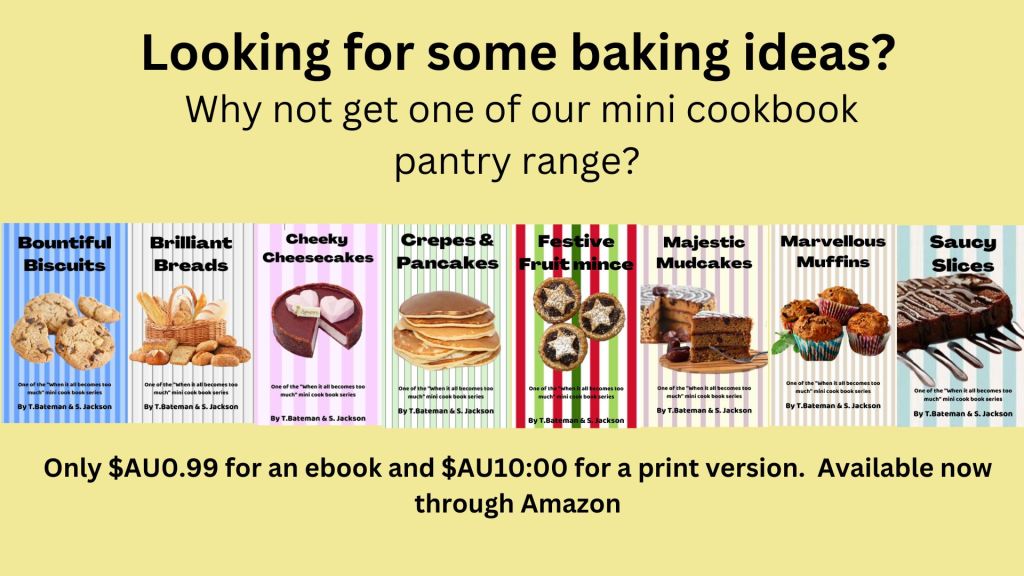 The “When it all becomes too much” series of mini cookbooks by Terri Bateman and Sarah Jackson are designed for those folk who find themselves with an abundance of pantry ingredients. They are a handy set of go-to ideas and recipes to deal with the excess. There are 20 recipes in each.